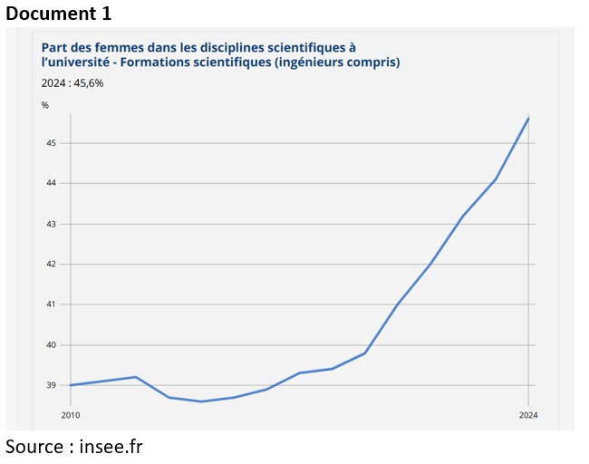 Corrigé : Les inégalités d’accès aux études en général, et aux études scientifiques en particulier, conduisent à un « réservoir de talents inexploités ». Ainsi, une partie de femmes ayant un potentiel scientifique s’orientera davantage vers des métiers que la société étiquette davantage comme féminins ; leur capacité à innover ne profitera donc pas à l’ensemble de la société. C’est pourquoi X. Jaravel parle des « Marie Curie perdues » du fait des stéréotypes de genre mais aussi des modes d’organisation sociale.
