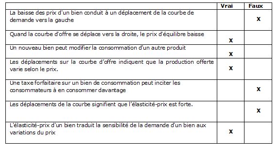 Indiquer dans le tableau si les facteurs présentés amènent un déplacement de la courbe d’offre vers la gauche ou vers la droite