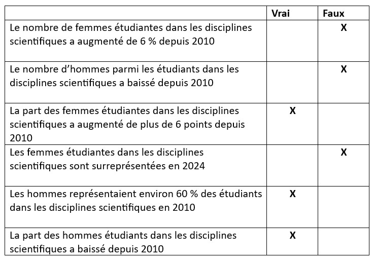 Facile Enoncé : 1) Vrai ou faux ? 2) Utiliser Melchior IAConsigne : « Je suis élève de seconde et je souhaite avoir une synthèse sur l’influence des stéréotypes de genre sur le choix des études» Voir la correction